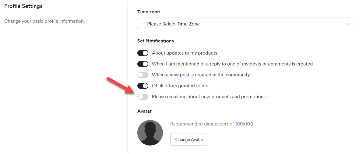 Ekkert mál. Skráðu þig inn á kennsluvefinn með notendanafni og lykilorði á www.h.is/innskra - Smelltu síðan á profile-táknið - myndin þín eða svona dökkt tákn líkt og sést á smærri myndinni að ofan. Veldu þar 'Stillingar' og þú þarft að fara aðeins niður í stillingarglugganum og þar finnur þú 'Profile Settings' - sjá stærri myndina. Þar getur þú stillt öll skilaboð til þín frá mér og kerfinu mínu. Neðsti valmöguleikinn - 'Please email me about new products and promotions' þarf að vera kveiktur til að þú fáir pósta um námskeiðið eða aðrar mikilvægar upplýsingar.